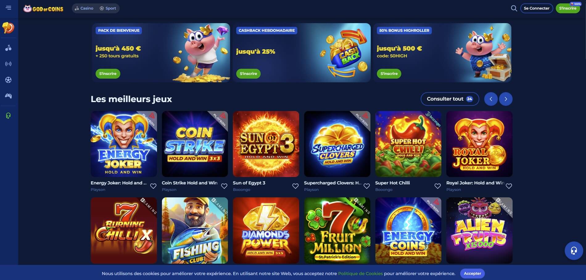 À peine débarqué sur le marché avec un lancement officiel fin 2024, God of Coins Casino fait incontestablement déjà partie des casinos en ligne les plus complets de la nouvelle génération. Ludothèque généreusement garnie, bonus de bienvenue accessible, posture crypto friendly et offre de paris sportifs, tout cela sur cette plateforme en ligne.