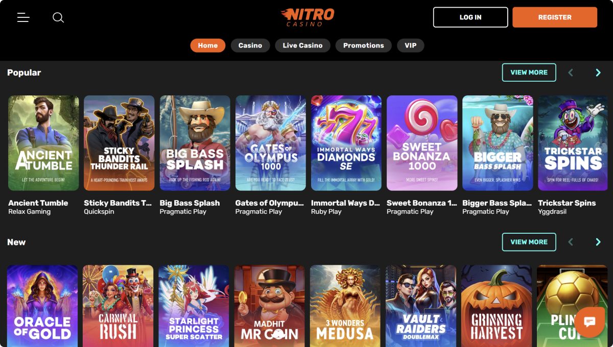 Nitro a amassé plus de 1000 machines à sous auprès des meilleures entreprises. Les jeux sont présentés par Pragmatic Play, Yggdrasil, Push Gaming et d’autres développeurs. Le RTP moyen est de 97 %.
